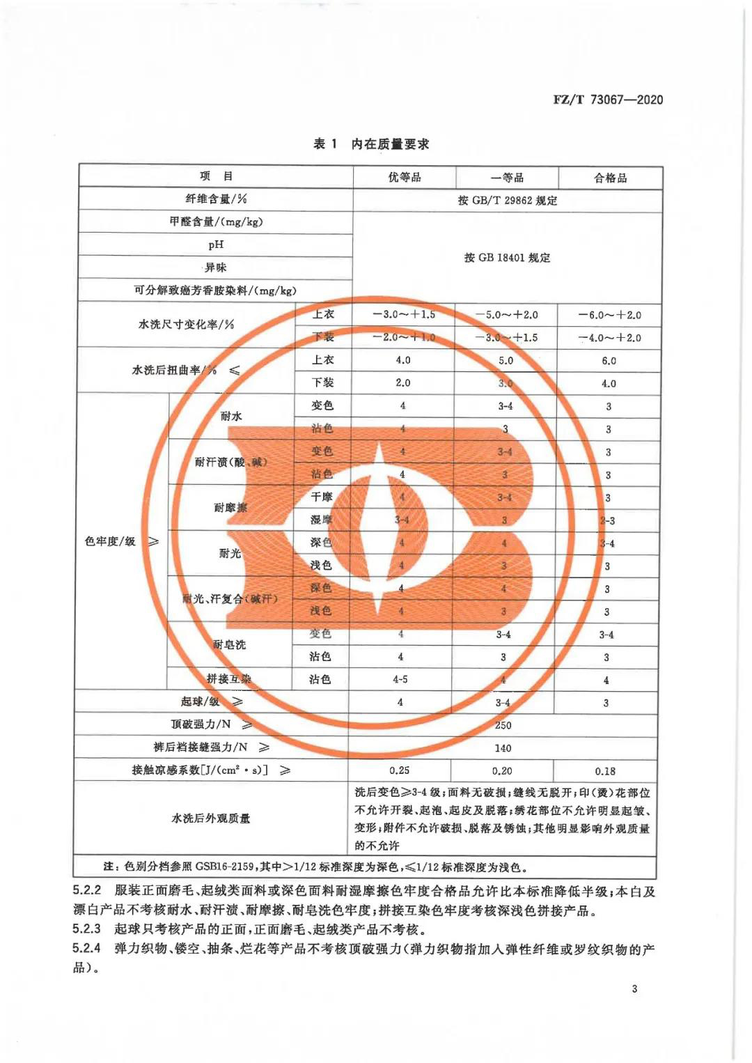 FZ/T 73067《接觸涼感針織服裝》將產(chǎn)品的涼感功能分為三個(gè)等級(jí),優(yōu)等品服裝的接觸涼感系數(shù)不小于0.25、一等品服裝的接觸涼感系數(shù)不小于0.20、合格品服裝的接觸涼感系數(shù)不小于0.18,這都比GB/T 35263-2017《紡織品 接觸瞬間涼感性能的檢測(cè)及評(píng)定》中不小于0.15的要求要高。