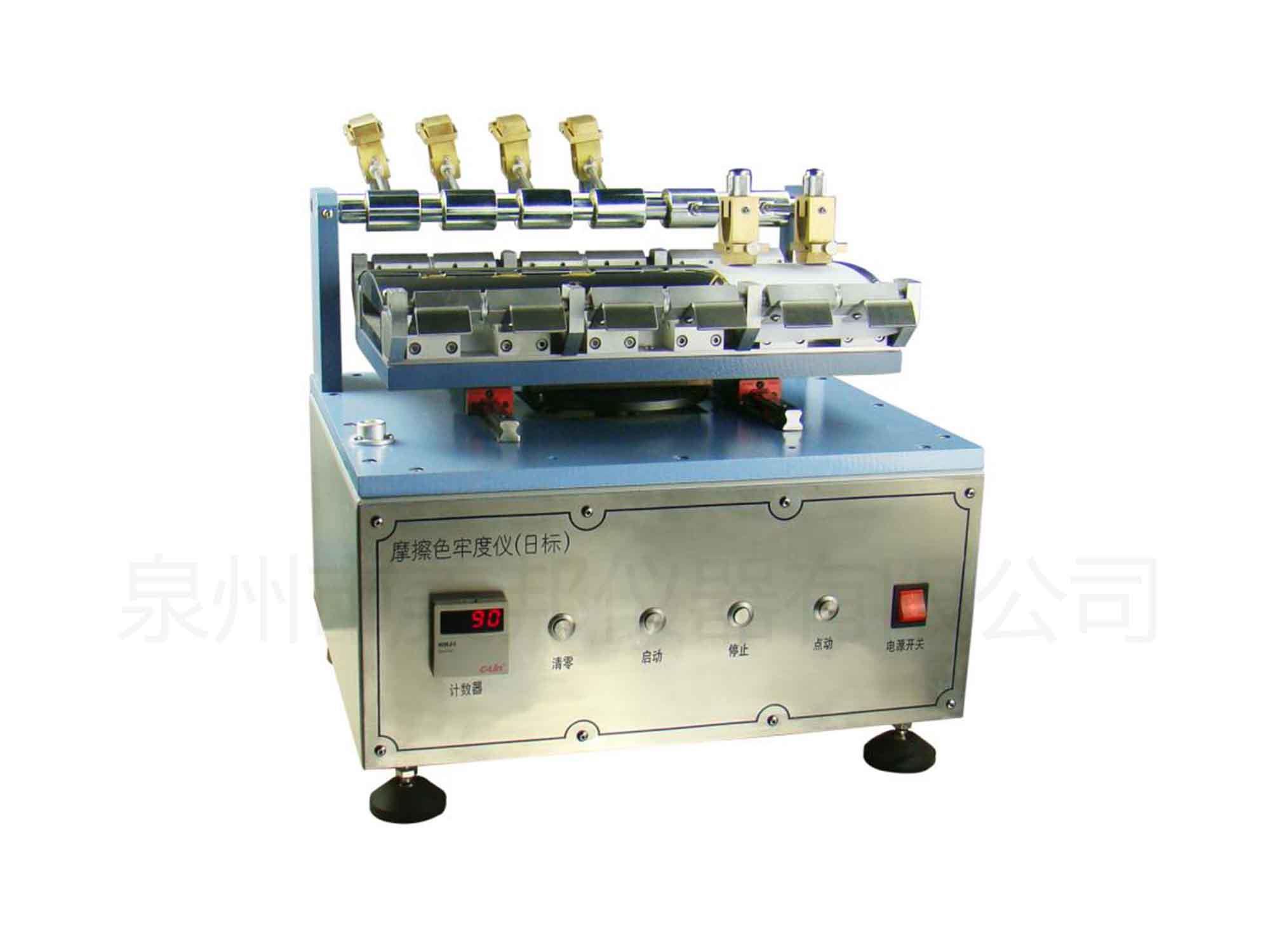主要用于染色纖維制品的耐摩擦色牢度的評價和判定;用干燥或濕潤之白棉布扎于本機之摩擦頭表面,以一定之荷重及次數(shù),摩擦有色試片后,對照灰色標,評定染色摩擦堅牢度等級;亦可作為有機溶劑之摩擦試驗。
