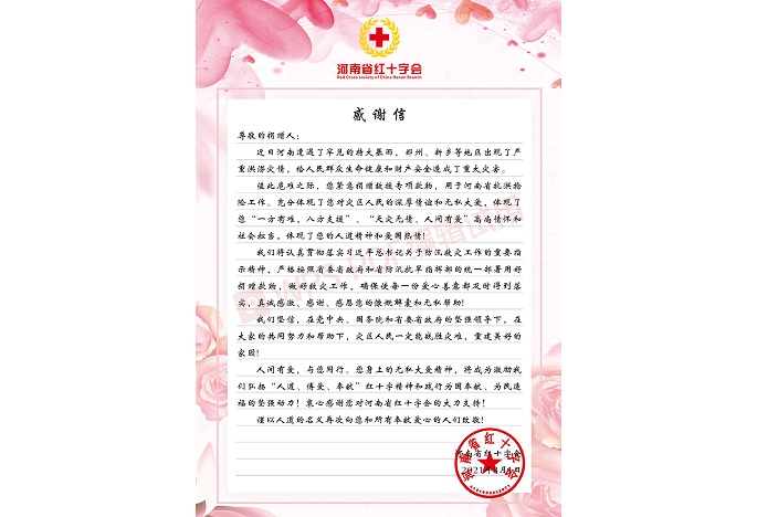 +河南紅十字會(huì)感謝信